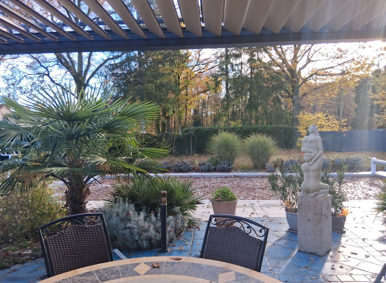 Grande pièce de vie (baies vitrées, cheminée insert) cuisine aménagée et équipée ouverte donnant sur terrasse de 50m² avec pergola bioclimatique, suite parentale (dressing et douche), 2 chambres, salle de bains, WC.