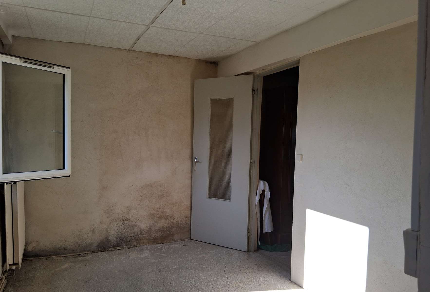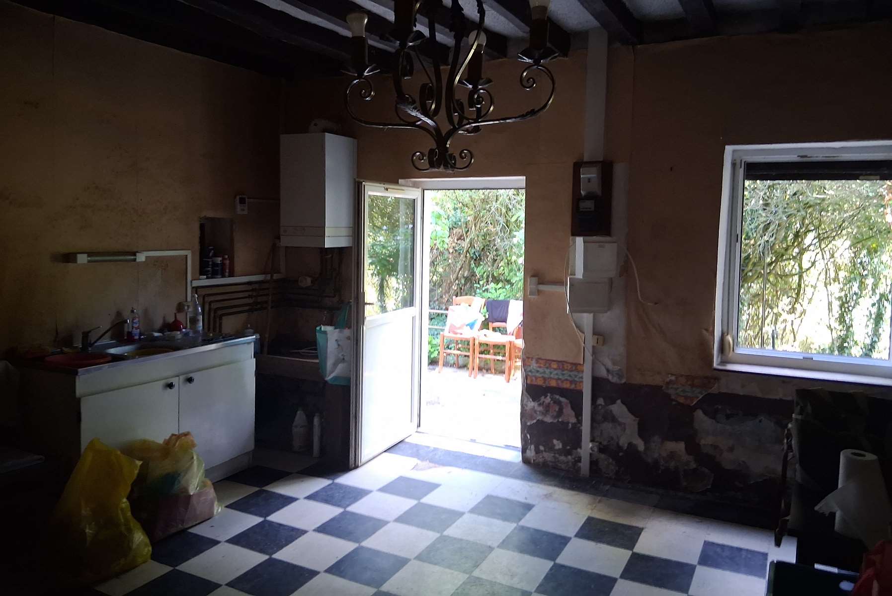 Cuisine, séjour, chambre, pièce, chauffage central gaz.