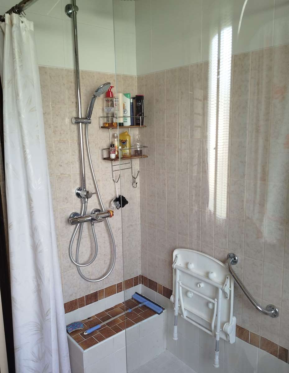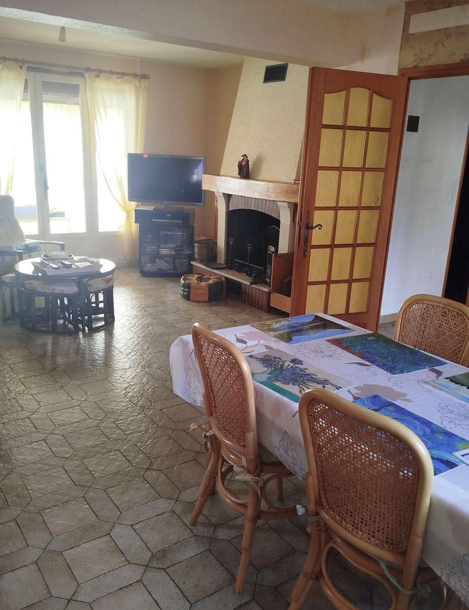 Entrée avec placards, séjour cheminée (récupérateur chaleur) cuisine aménagée donnant sur véranda climatisée, débarras, 2 chambres (palacard parquet), salle d'eau douche à l'italienne, WC avec lave mains.